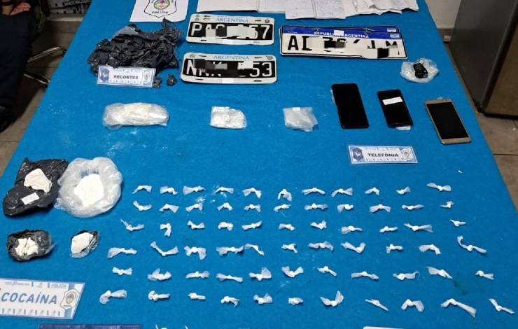 El detalle de los materiales secuestrados en ambos lugares, fue: 3 trozos compactos con cocaína (52 gramos); 3 balanzas digitales; $ 37620 en efectivo; 2 teléfonos celulares; 1 pistola calibre 22 mm, marca Junior; 1 pistolón antiguo, doble caño, calibre 24 mm; 1 revólver calibre 32 mm, largo, marca Tejano; 1 revólver calibre 22 mm, corto, marca Pasper; 2 envoltorios de nylon con marihuana (15 gramos; 8 gramos); un envoltorio con bicarbonato (sustancia de corte); 25 municiones, cartuchos calibre 12mm, y 5 municiones calibre 32 mm.