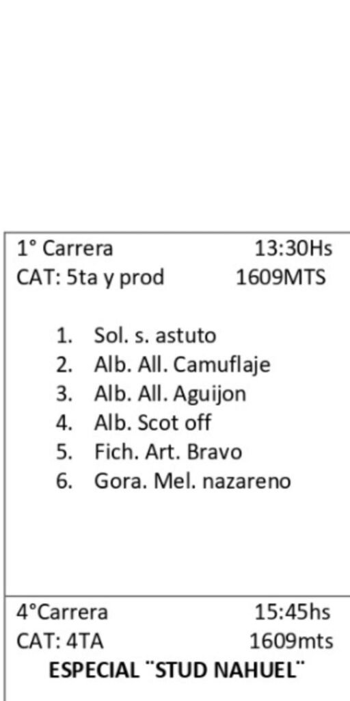 La cita sera mañana Domingos a partir de las 12 AM, en el Hipodromo de Hurlingham , donde se espera gran concurrencias de fanáticos , amigos y apasionados por los caballos.
