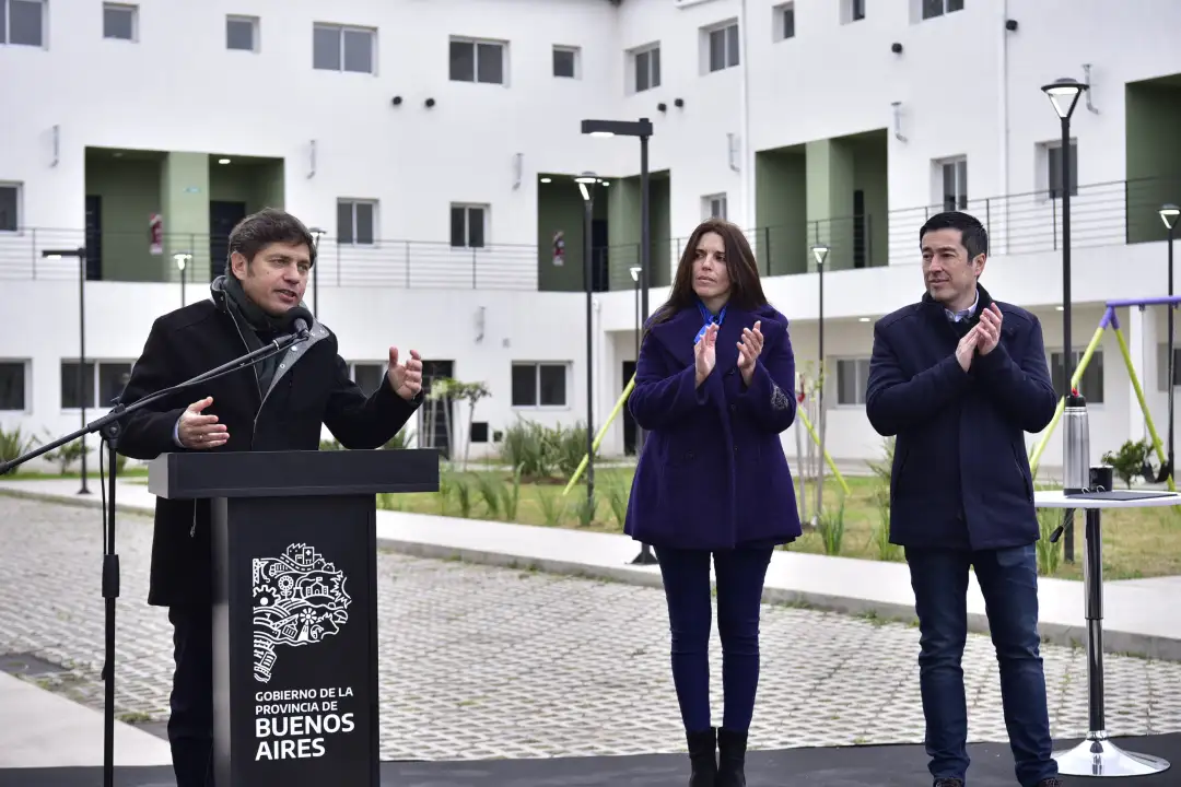 El intendente de Malvinas Argentinas, Leo Nardini, y el gobernador de la Provincia de Buenos Aires, Axel Kicillof, entregaron viviendas en el distrito de Malvinas Argentinas, acompañados por el vicepresidente 1ro de la Cámara de Senadores de la Provincia, Luis Vivona; la secretaria de Gobierno y Monitoreo Institucional de Malvinas Argentinas, Lic. María Luján Salgado; la ministra de Hábitat y Desarrollo Urbano de la Provincia de Buenos Aires, Silvina Batakis; y la ministra de Ambiente, Daniela Vilar. Las unidades están ubicadas en la intersección de Morse y Paracas, de la ciudad de Ing. Pablo Nogués. El proyecto contempla 52 viviendas en el Complejo Residencial Morse, que cuenta además con un amplio espacio verde que incluye juegos, área de descanso y un ámbito destinado a una huerta.