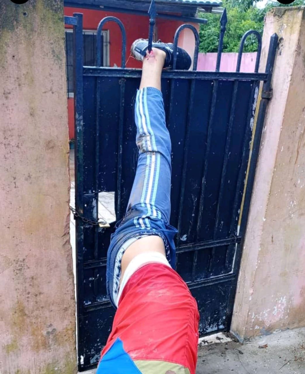 Esto sucedió ayer Domingo en horas de la madrugada en el Barrio Santa Brígida , cuando un reo quiso ingresar con fines de robo a una casa . Su pierna quedo atrapada en la reja de la puerta de ingreso .