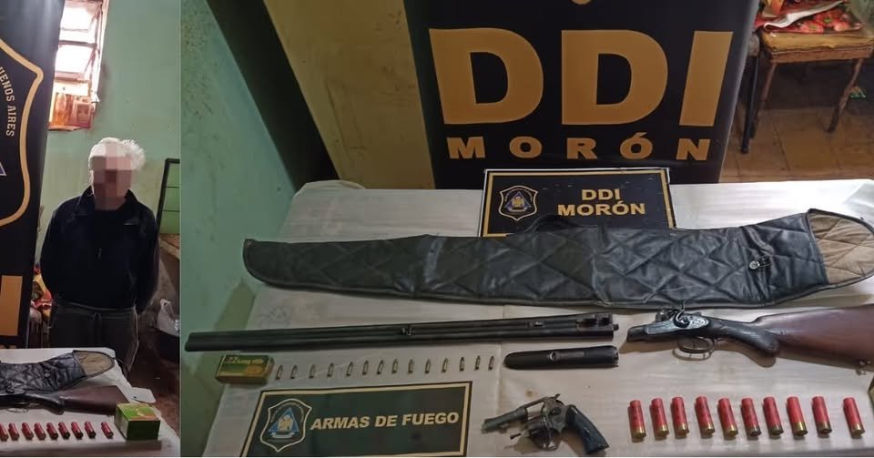 Un conflicto por ruidos de obra en la localidad de Merlo norte terminó en un escándalo policial cuando un jubilado de 88 años, molesto por los trabajos en una vivienda vecina, amenazó a un grupo de albañiles con una escopeta. La intervención policial derivó en el hallazgo de un verdadero arsenal dentro de su casa, incluida un arma con pedido de secuestro desde hace más de dos décadas.